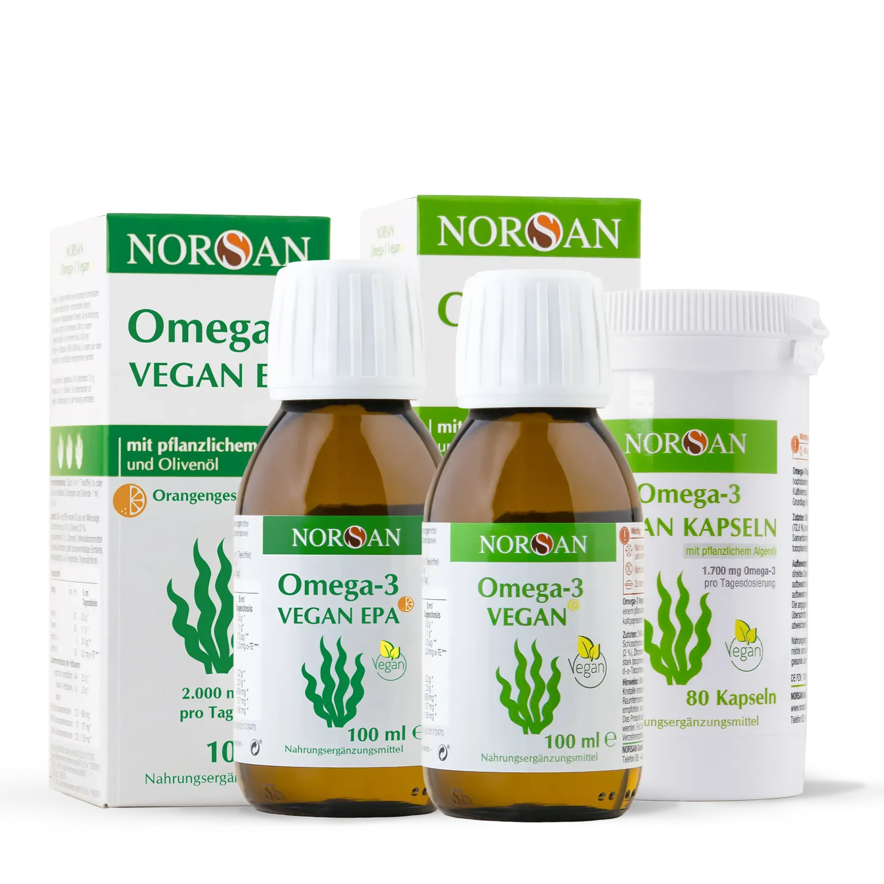 În medie, 9 din 10 persoane au deficit de omega 3. O doză zilnică de 2.000 mg omega 3, furnizată de uleiurile NORSAN, este suficientă pentru a corecta acest dezechilibru și pentru a asigura un aport optim de acizi grași esențiali.
